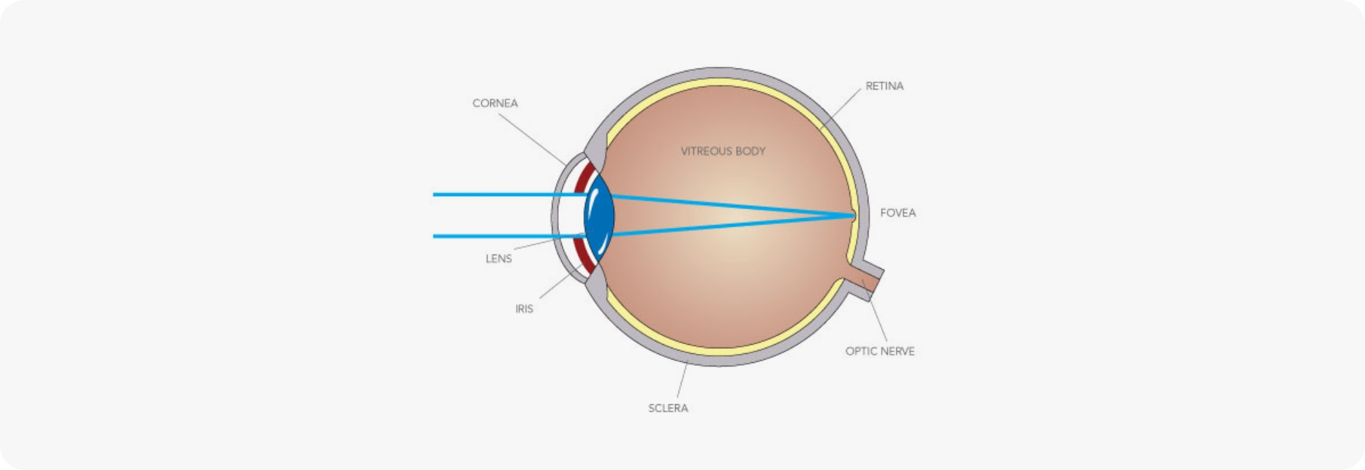 The best way is to think of the eye is as a cinema, where the cornea and the lens are the projectors and the flat retina on which the image is focused is the cinema screen.